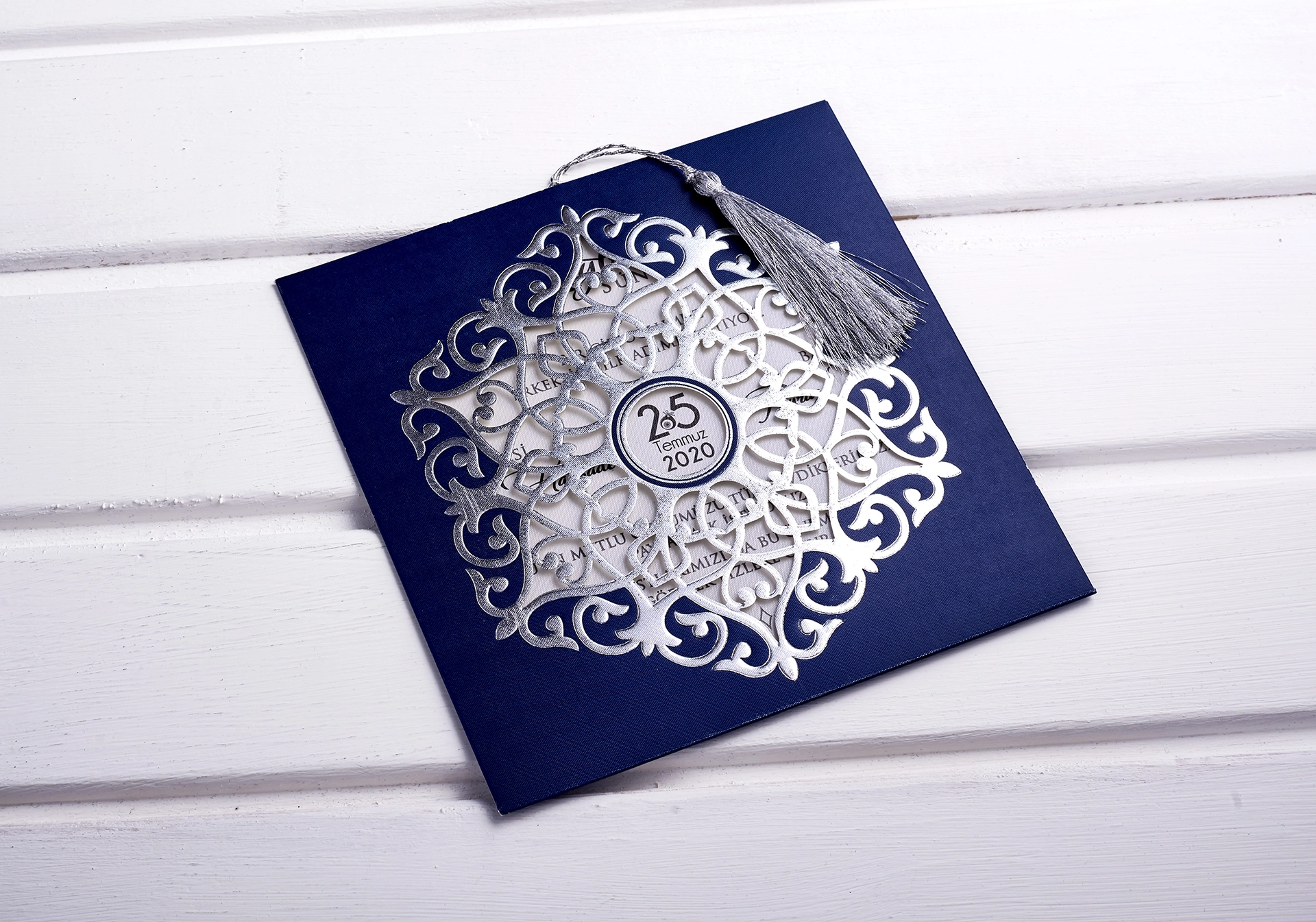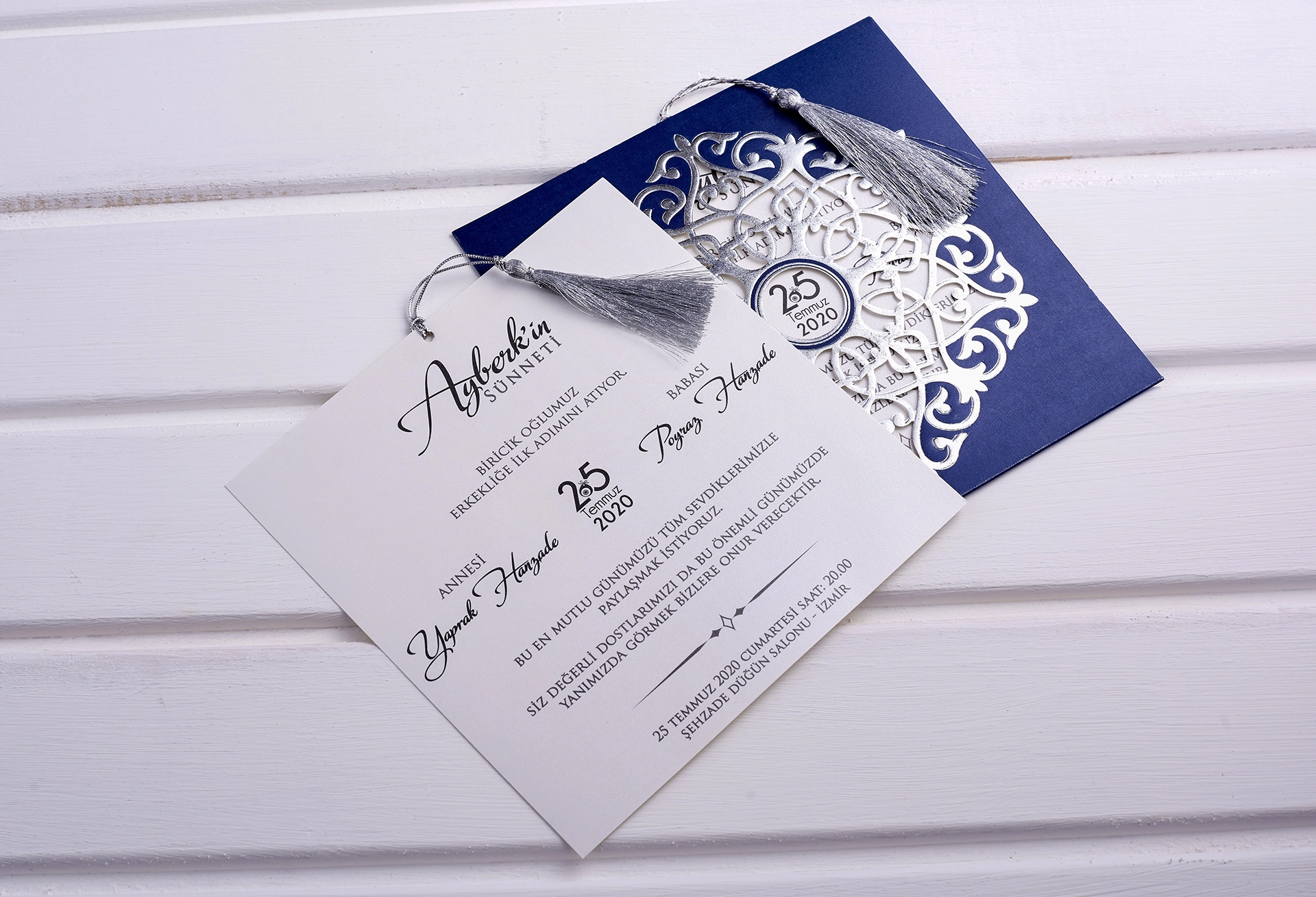 Davetiye ürün görselinde ve üzerinde varsa zarf, ip ve aksesuar fiyata dahildir.